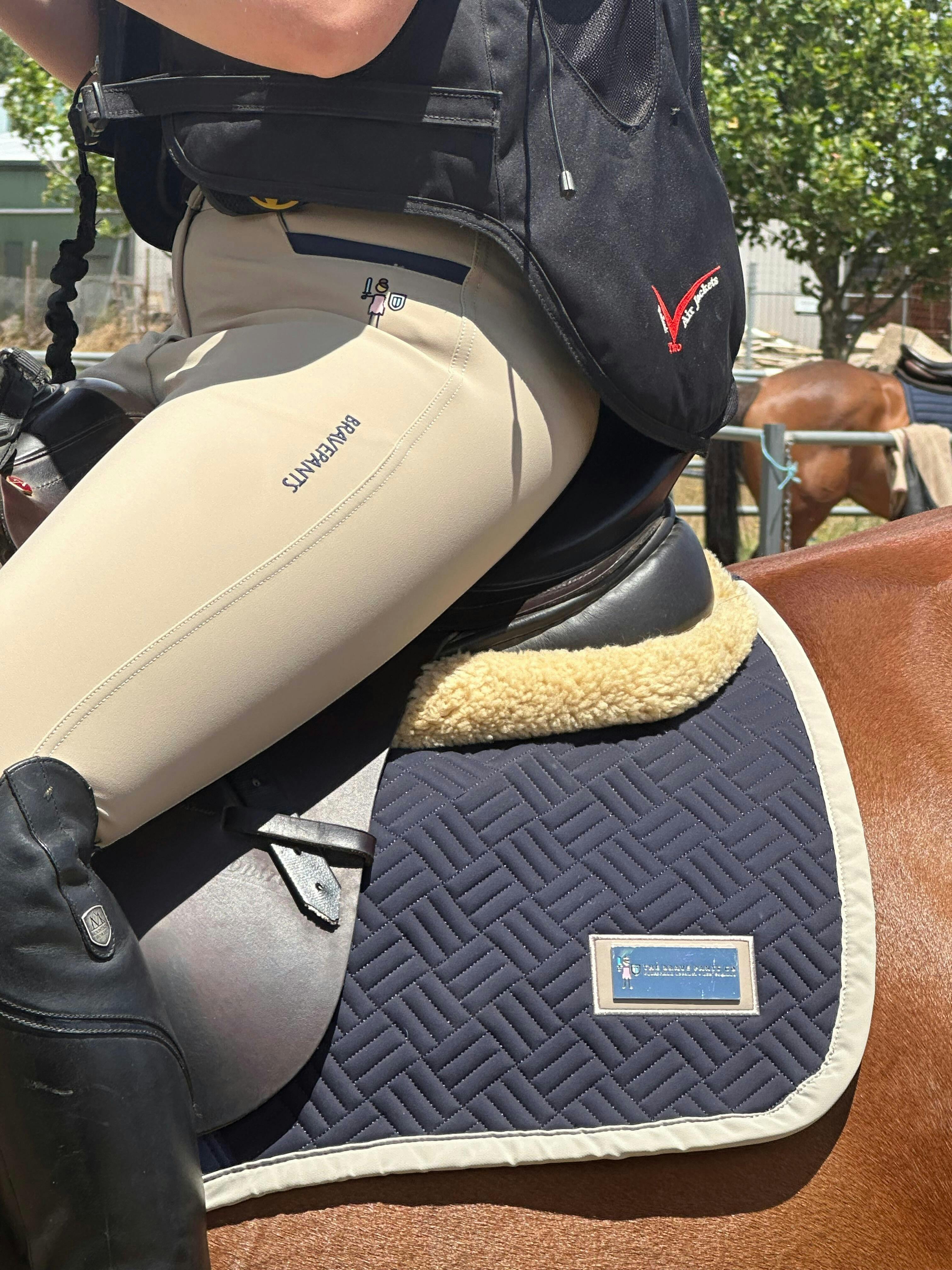 Introducing the newest release from The Brave Pants Co. — a saddle pad engineered for riders who demand more from their gear. Designed with the same grit, durability, and science backed mindset that built our brand, this saddle pad doesn’t just complete your kit… it elevates it. Crafted from high-density, abrasion-resistant materials, it’s made to withstand long days in the saddle, hard training sessions, muddy paddocks, and every wild moment in between. The tough outer shell resists wear and friction, while the advanced inner cushioning provides stable, breathable support that keeps your horse comfortable and performing at their best. Every stitch, curve, and contour has been purpose-built and tested. Our moisture-wicking technology helps keep horse cooler, drier, and more focused. Finished with the signature Brave Pants Co. detailing, this saddle pad represents everything we stand for: strength, purpose, and the courage to continue.